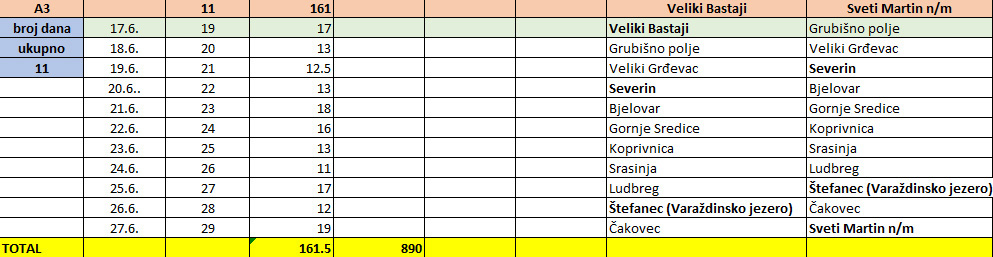 Dogovorom, nakon boravka u Đulovcu kroz dvije noći i transferima, koje je djelomično “zarađivao” i pomaganjem obitelji Furjan, kojima se i ovim putem zahvaljujemo u Makijevo ime, danas je došao red na načinjanje treće etape. Našom modificiranom verzijom, gdje smo odlučili ići ravnom linijom prema Marofu, Maki će prijeći 161 kilometar u 11 dana, kao što možete vidjeti u priloženoj tablici. Također, dobri ljudi koji pratite Makijev put, slobodno mu se pridružite u datumima koje vidite u tablici na pojedinim dionicama. Svaka pomoć je dobrodošla!